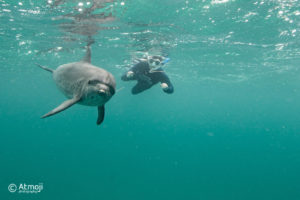 In 2022, I return to Wildquest. I am in the water with a group of very curious dolphins.